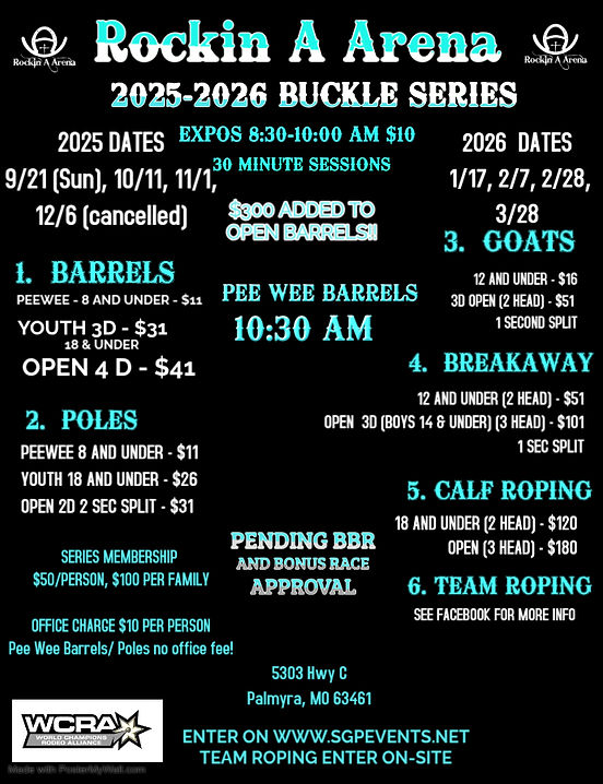 Rockin A Arena Timed Event #5 - 01/17/2026 - Rockin A Arena - Palmyra, MO • 238 entries in this event • Total Prize: $ 3,787.00