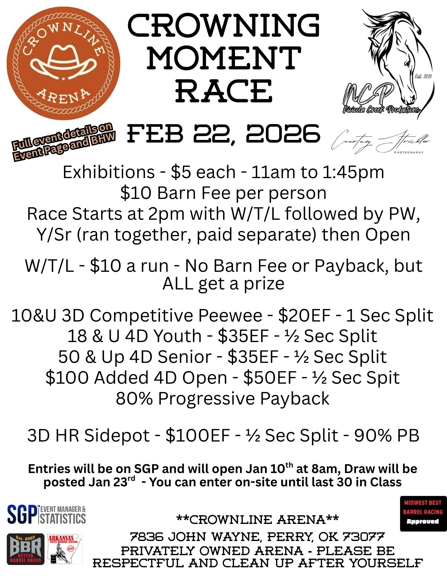Crowning Moment Race - 02/22/2026 - Crownline - Perry, Ok • 272 event entries • 153 horses in the event • Total Prize: $ 6,422.00