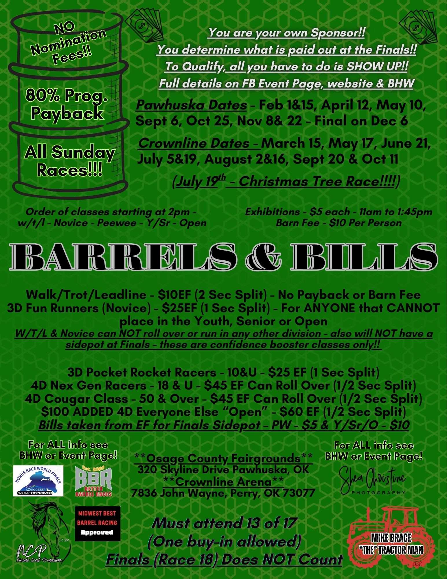 NCP Barrels and Bills - 04/12/2026 - Osage County Fairgrounds - Pawhuska, OK • 186 event entries • 110 horses in the event • Total Prize: $ 4,830.00