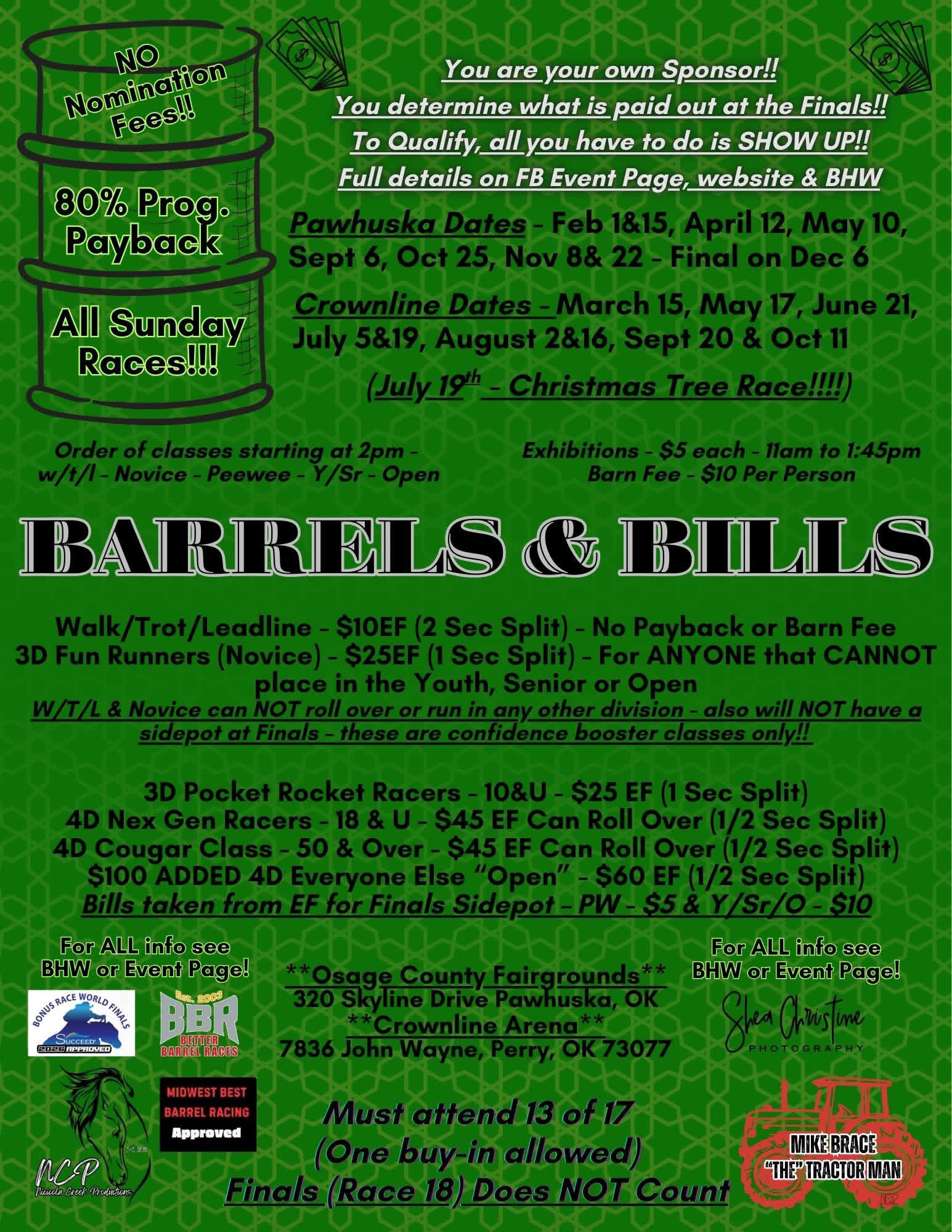 NCP Barrels and Bills - 03/15/2026 - Crownline - Perry, Ok • 163 event entries • 88 horses in the event • Total Prize: $ 3,251.00