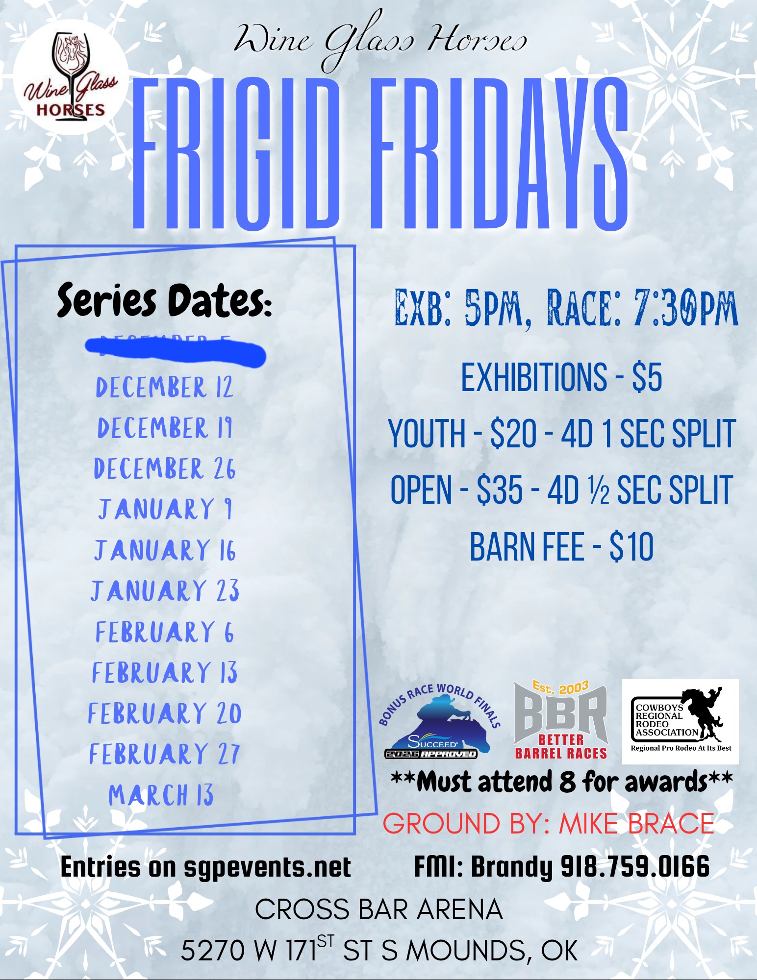WGH Frigid Fridays - 01/09/2026 - Cross Bar Arena - Mounds, OK • 307 event entries • 214 horses in the event • Total Prize: $ 6,795.00
