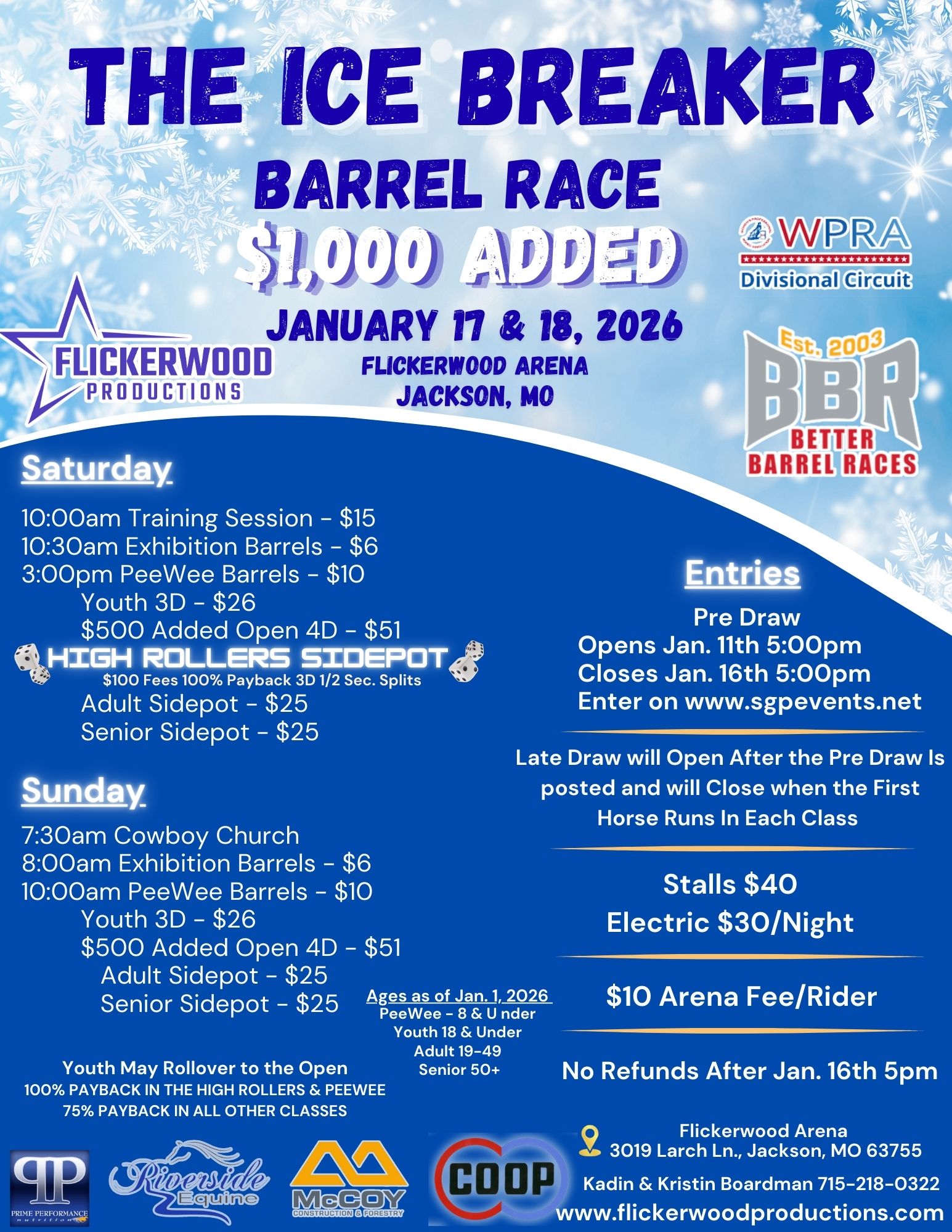 Flickerwood Productions Ice Breaker 2026 - 01/17/2026 to 01/18/2026 - Flickerwood Arena - Jackson, MO • 645 event entries • 219 horses in the event • Total Prize: $ 15,061.00