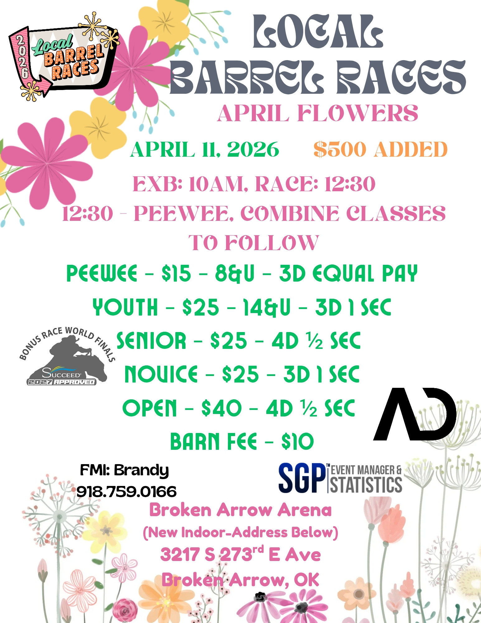 LBR April Flowers - 04/11/2026 - Freeny Arena - Broken Arrow, Ok • 251 event entries • 132 horses in the event • Total Prize: $ 4,769.00
