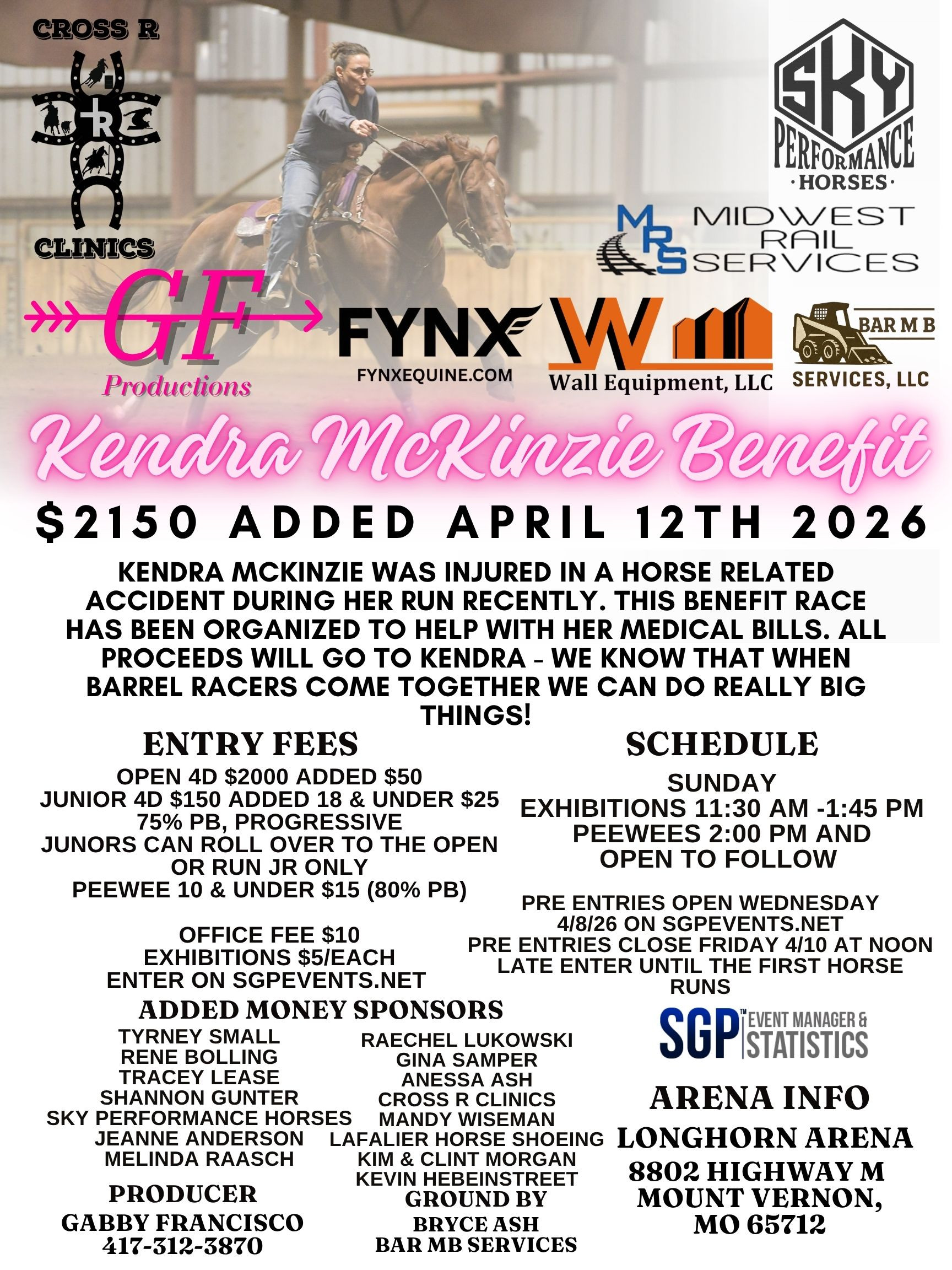Kendra McKinzie $2000+ Added Benefit - 04/12/2026 - Longhorn Arena - Mt. Vernon, MO • 272 event entries • 160 horses in the event • Total Prize: $ 7,942.00