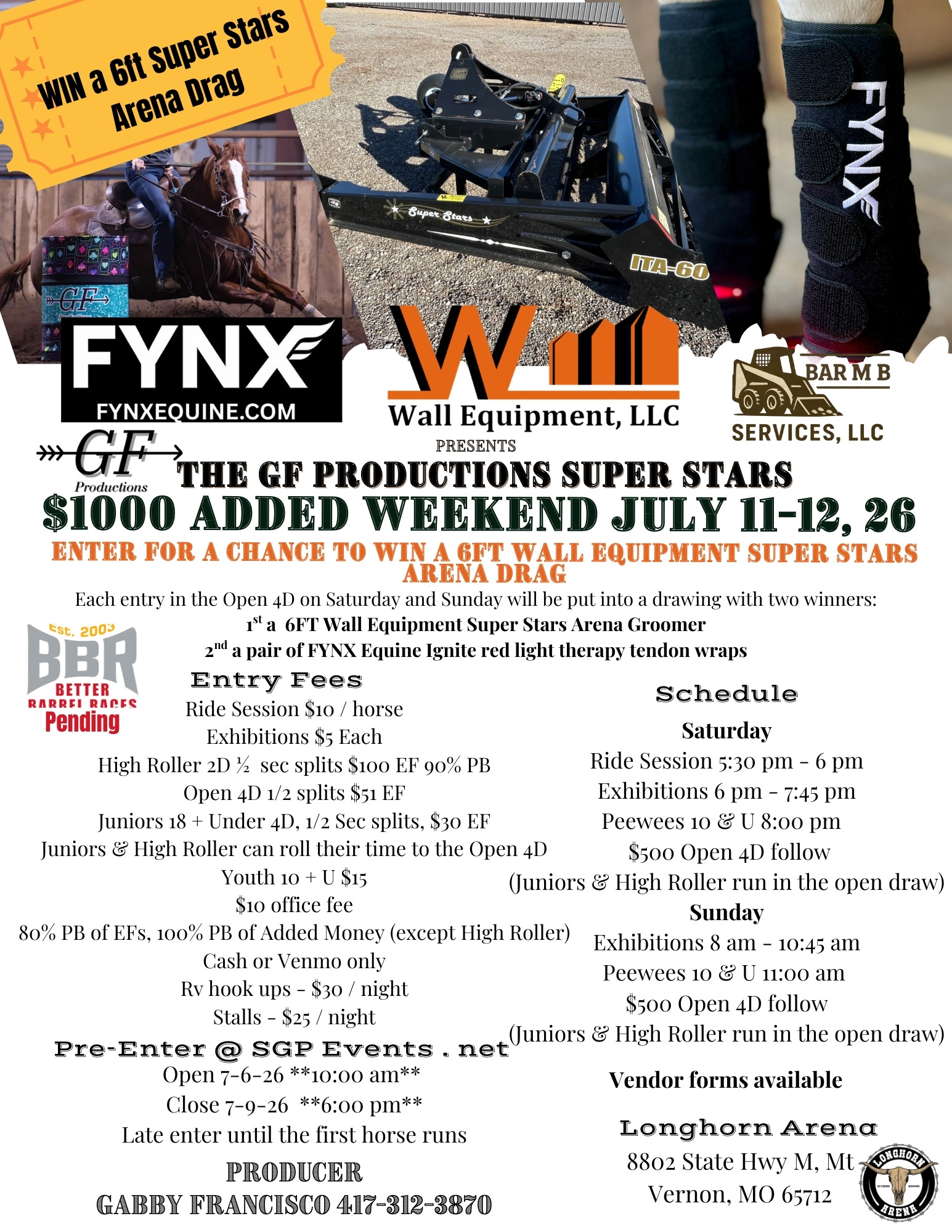 $1000 GF Productions Super Stars Weekend - 07/11/2026 to 07/12/2026 - Longhorn Arena - Mt. Vernon, MO