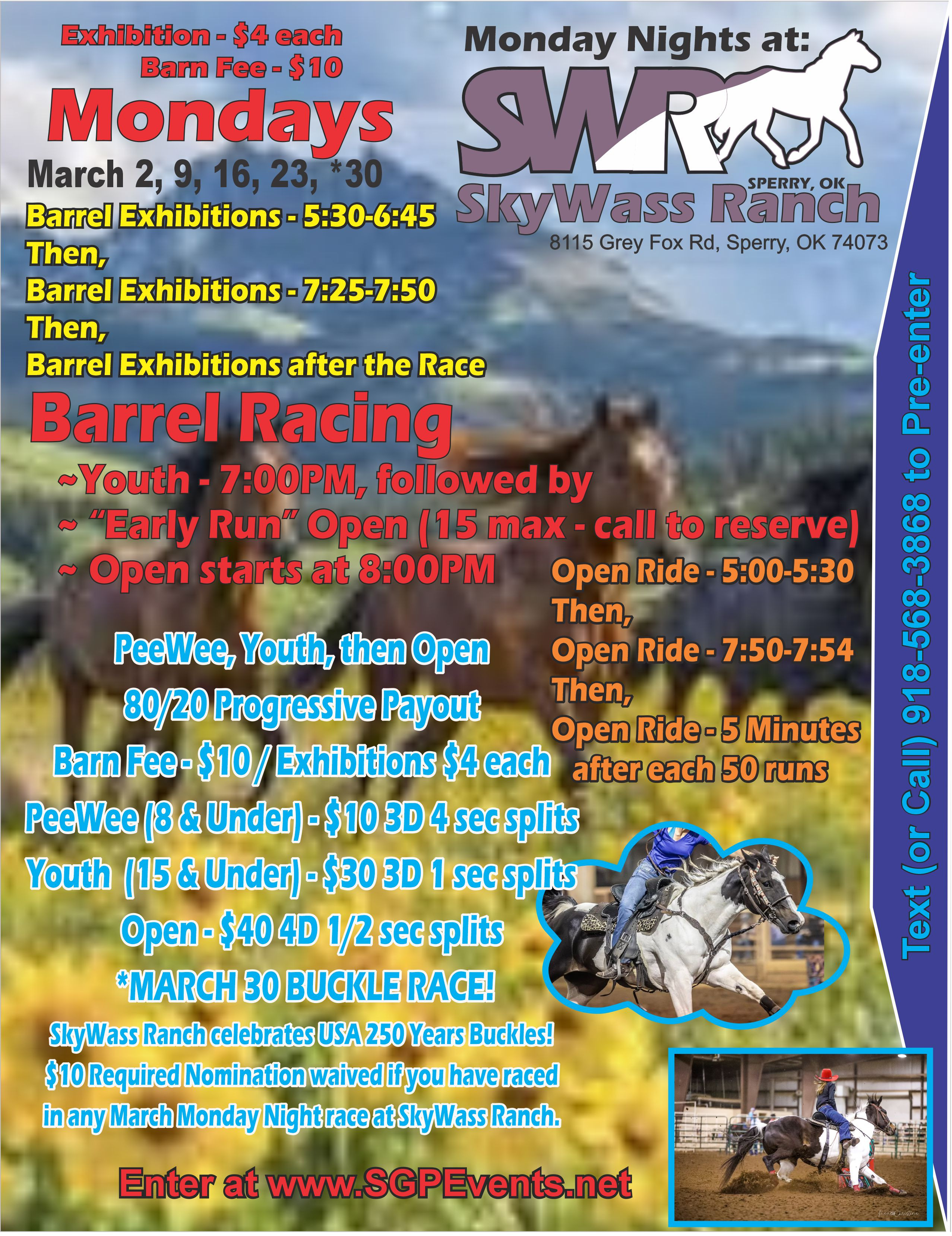 Monday Night at Skywass Ranch - 06/08/2026 - Skywass Ranch - Sperry, OK
