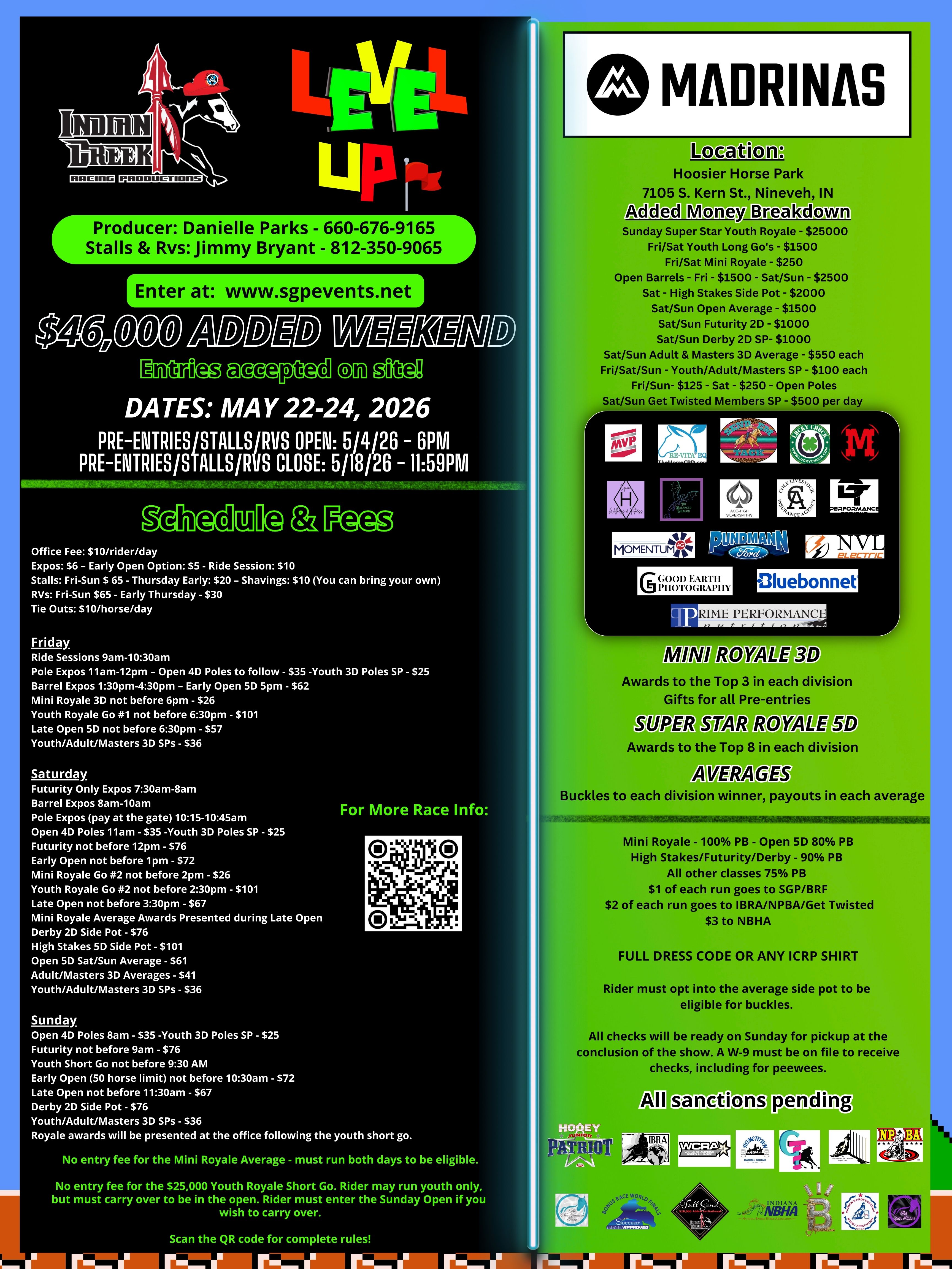ICRP $46000 Level Up Youth & Open Show - 05/22/2026 to 05/24/2026 - Hoosier Horse Park - Franklin , IN