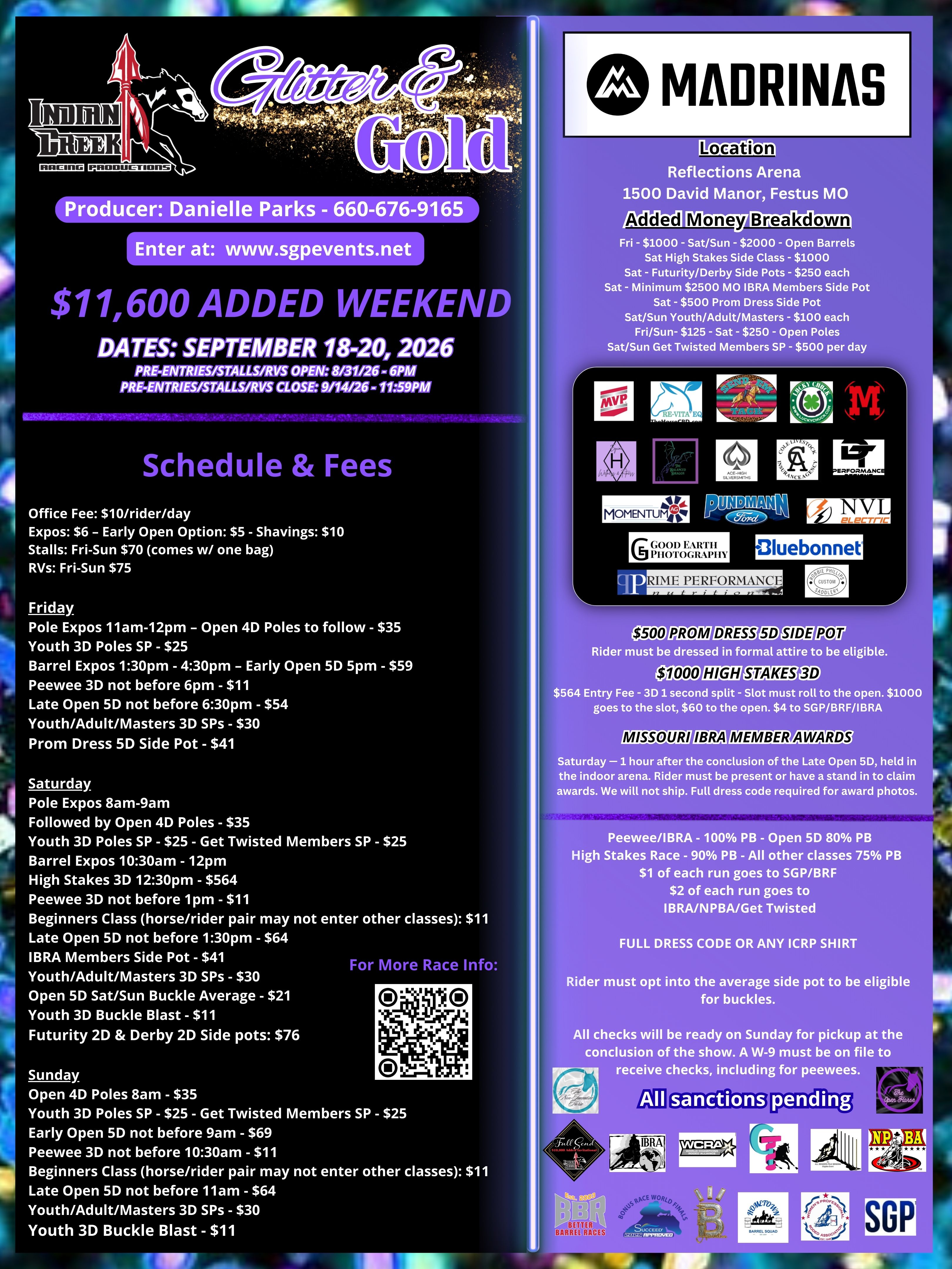 ICRP $11600 Glitter & Gold & High Stakes Race - 09/18/2026 to 09/20/2026 - Reflection Event Center - Festus, MO